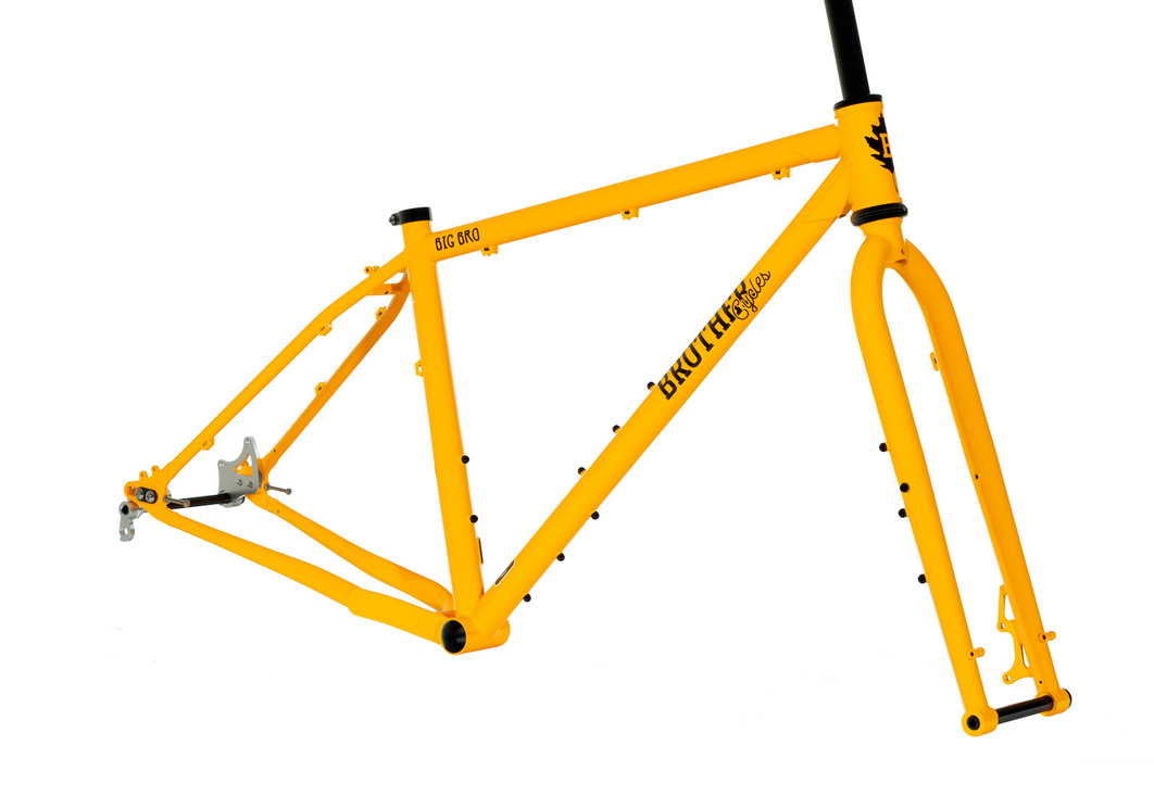 Der vielseitig, robuste Adventure-Rahmen in 29/27,5+ – entwickelt, für Touren weit abseits der ausgetretenen Pfade und darüber hinaus. Egal, ob für ein leichtes Bikepacking-Setup, Vorder- und Hinterradtaschen für eine voll bepackte „Weltumrundung“-Tour oder einfach nur mit wenig Gepäck ein paar Waldwege erkunden. Der Big Bro kann damit umgehen.